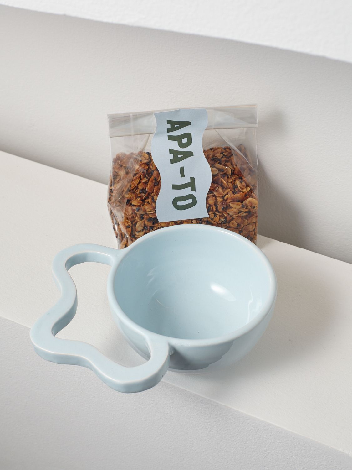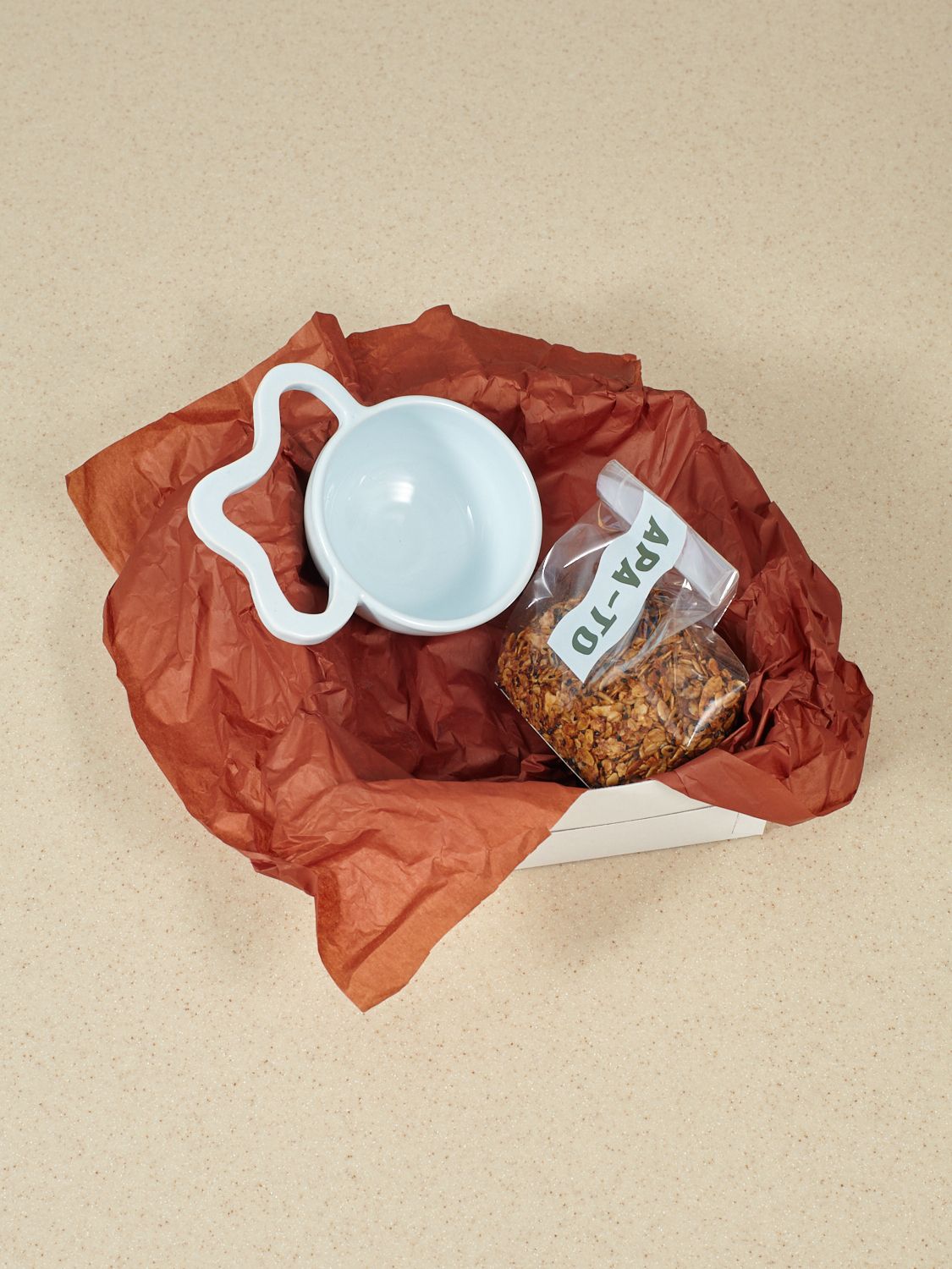 The Wadia Set includes a beautiful ceramic bowl in light blue and a package of a homemade sesame granola.