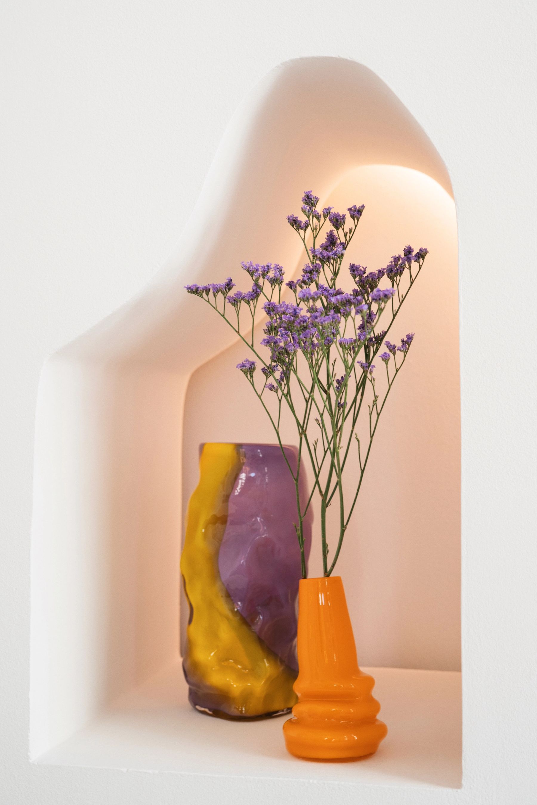 Her approach to glass processing, whether for functional objects or art installations, is known to be experimental and unorthodox. Crumpled forms which appear to decompose and collapse in front of our eyes are among the elements which characterize her artistic work.
