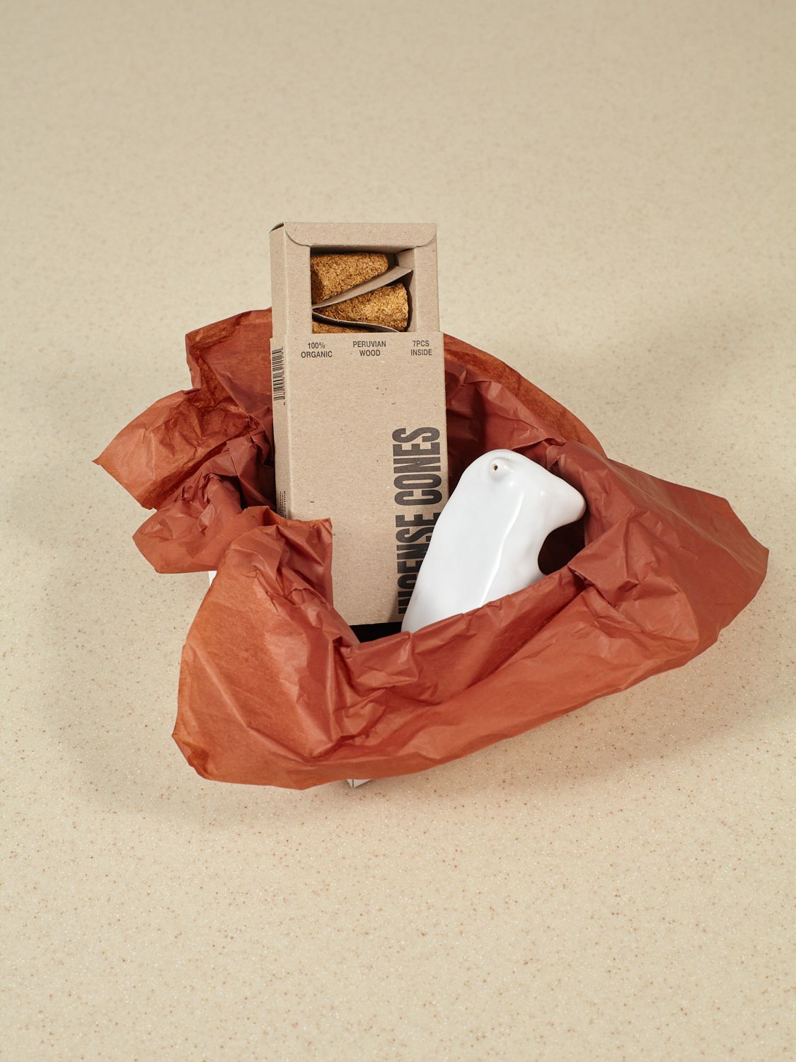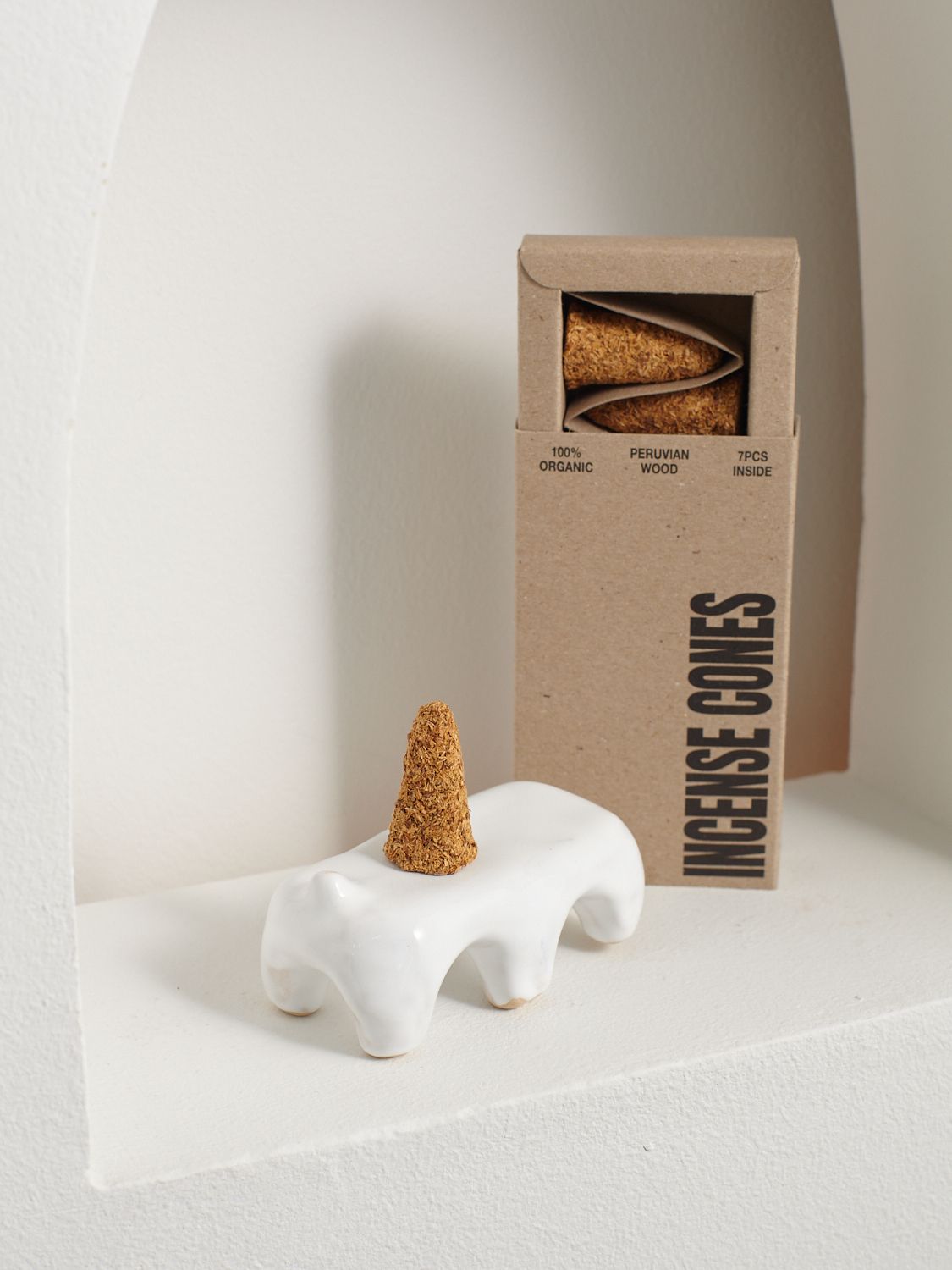 The natural incense cones by So.Slow (based in Bratislava) are made from Bursera graveolens wood from Peru. Traditionally handmade, these cones have an intense, enveloping aroma and allow long-lasting autonomous fumigation.