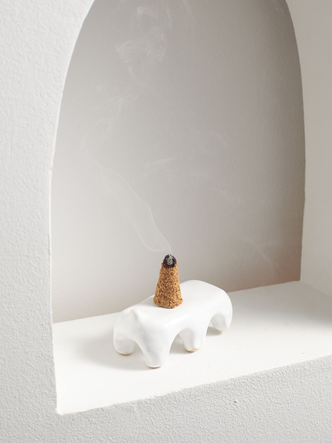 The ceramic incense holder with legs is handmade by Siup Studio, which is based in Warsaw. The incense holder can also be used for incense sticks.