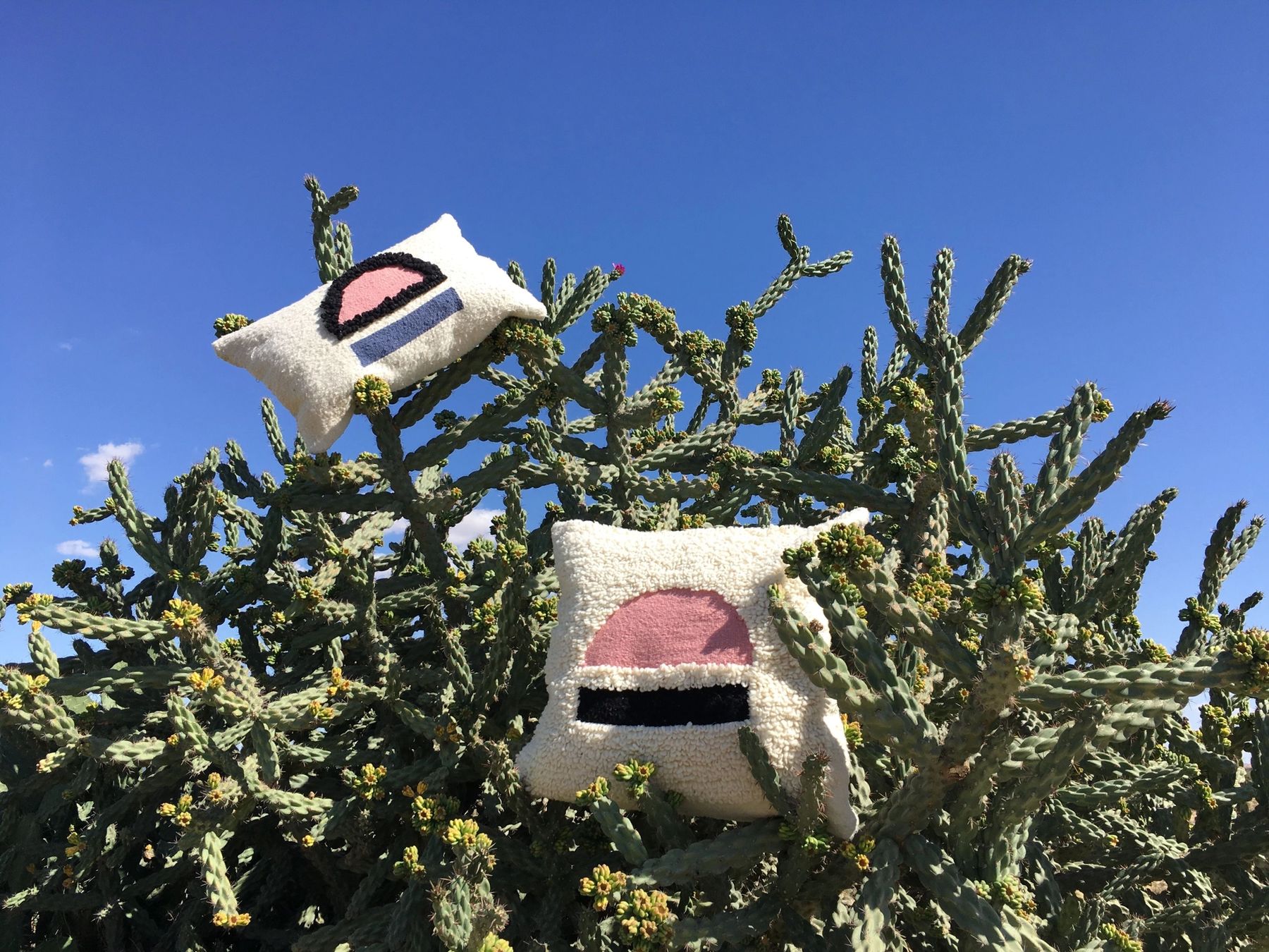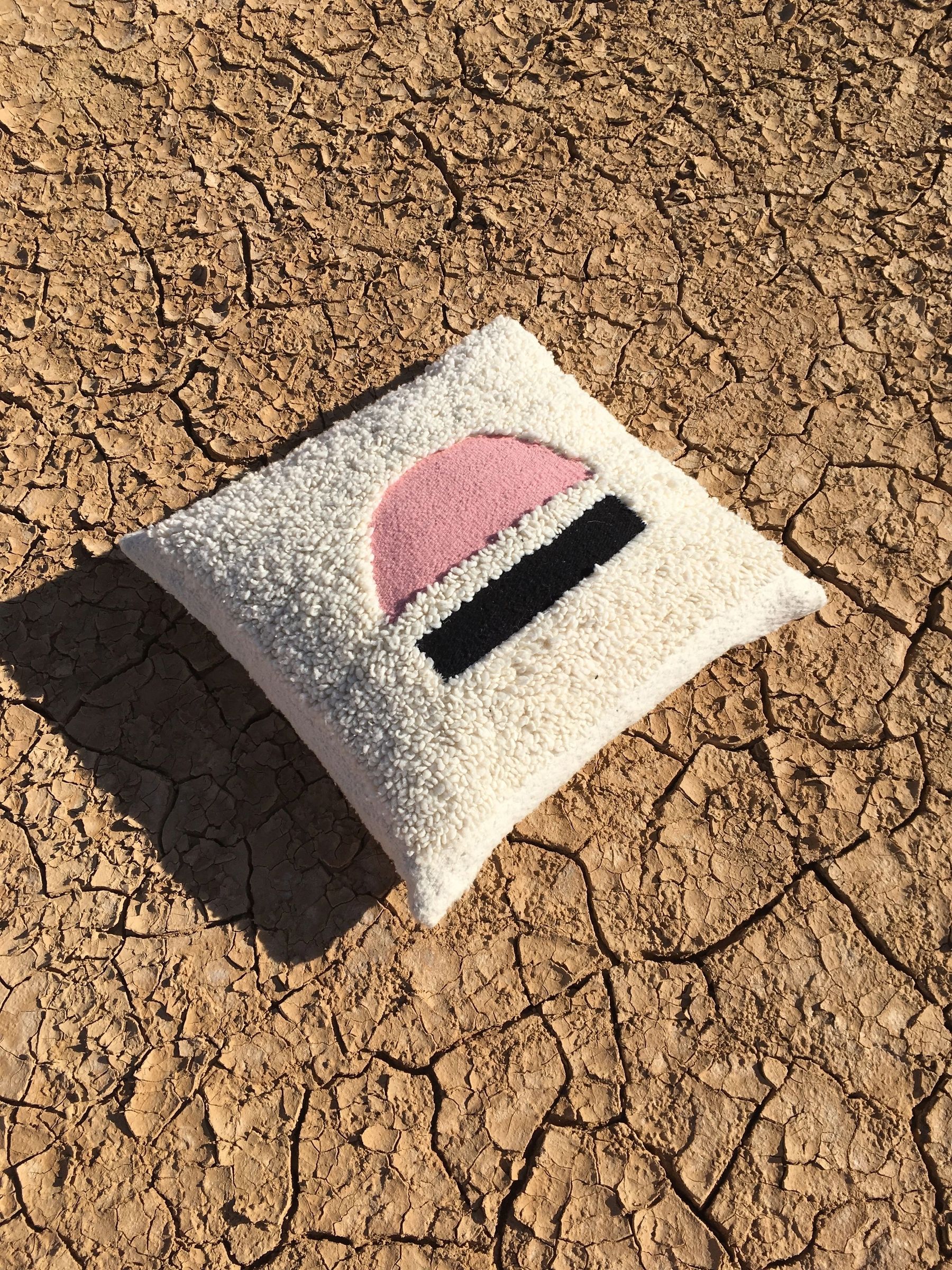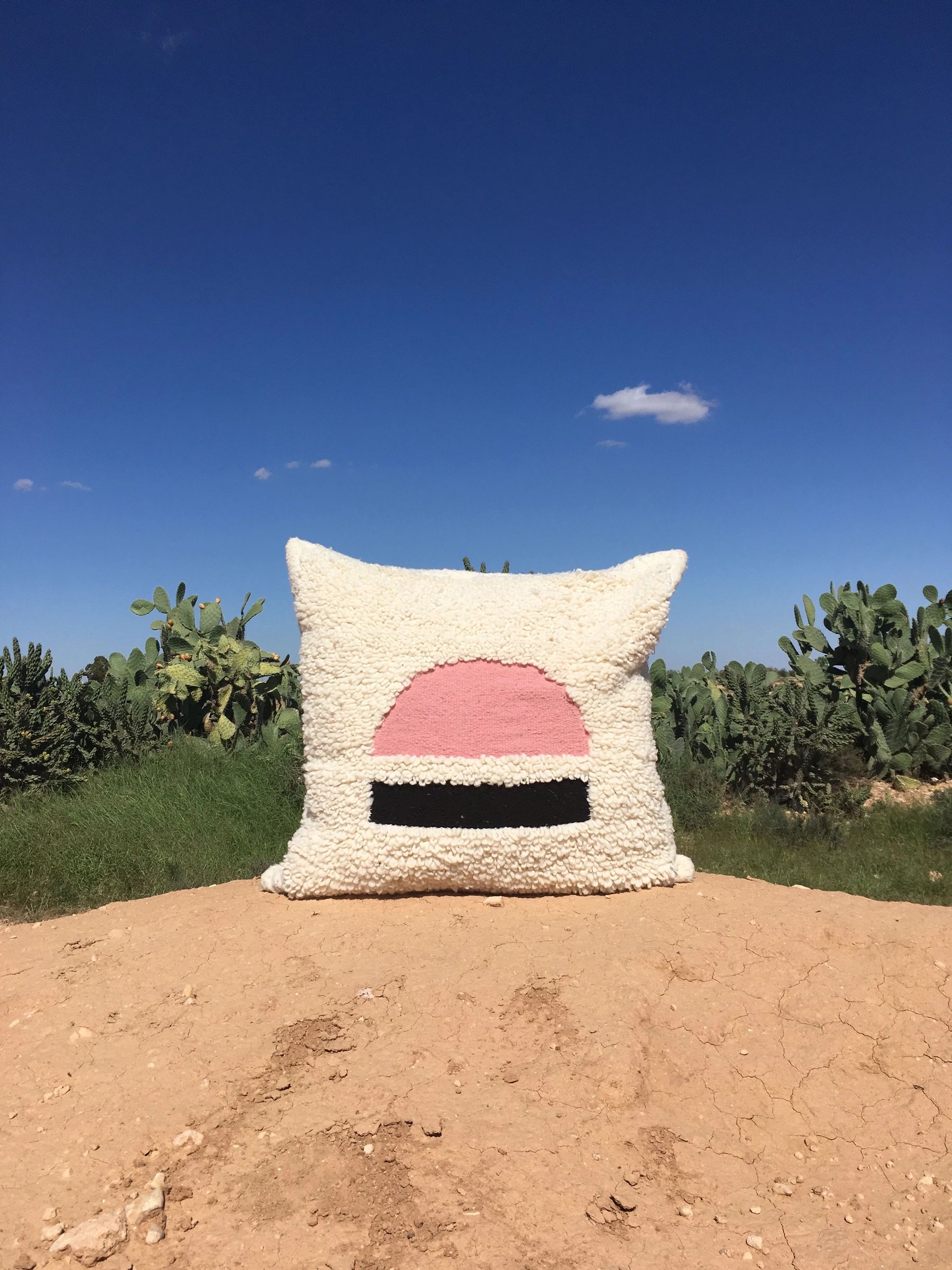The Marwa 01 cushion by Nedra Chachoua is handmade with care and love by Atelier Sidi Ben Aoun, which is located in Sidi Bouzid, Tunisia. All of Nedra Chachoua's tapestries and cushions are hand-woven with a loom by the weaver Wassila using traditional techniques with wool from her own sheep farm. Each piece is unique and requires time and dedication. As our production is 100% artisanal, shapes and colors may vary.